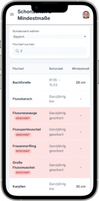 Um die Tier-, Natur- und Umweltschutzaspekte aufzugreifen und es dem Benutzer den Zugang zu Informationen bezüglich des Tier-, Natur- und Umweltschutzes zu vereinfachen, kann unter diesem Punkt für das gerade befischte Bundesland und zusätzlich nach Fisch gefiltert werden. Sodass eingesehen werden kann welche Fische invasiv sind und welche in welchem Zeitraum geschont sind oder welches Mindestmaß diese haben.