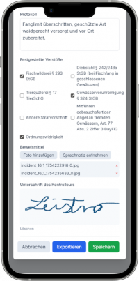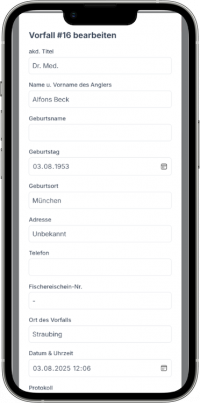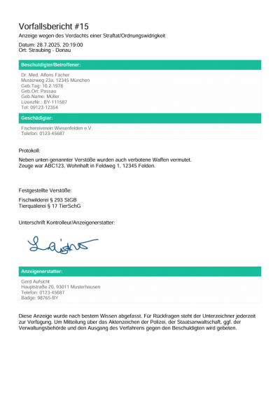 Der Geschädigte ist in der Regel der Gewässerbetreiber/Verein. Da der Kontrolleur einem Gewässerbetreiber/Verein unterstellt ist, ist eine manuelle Eingabe des Geschädigten nicht erforderlich
